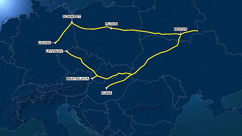 Маршрут нафтопроводу «Дружба» на карті: від джерела до розгалужень